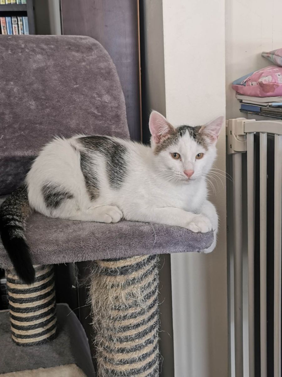 Being with humans, young or old is his thing but loves cats and dogs too. He has a really loud purr and has a beautiful kind nature.