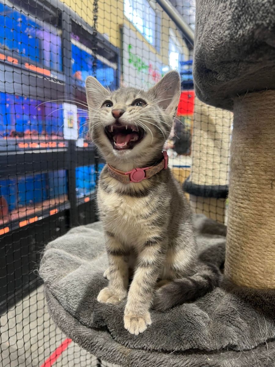 Yzma is a sweet playful tabby who loves cuddles and attention, She is full of beans and would suit any home that wants a confident happy kitten.