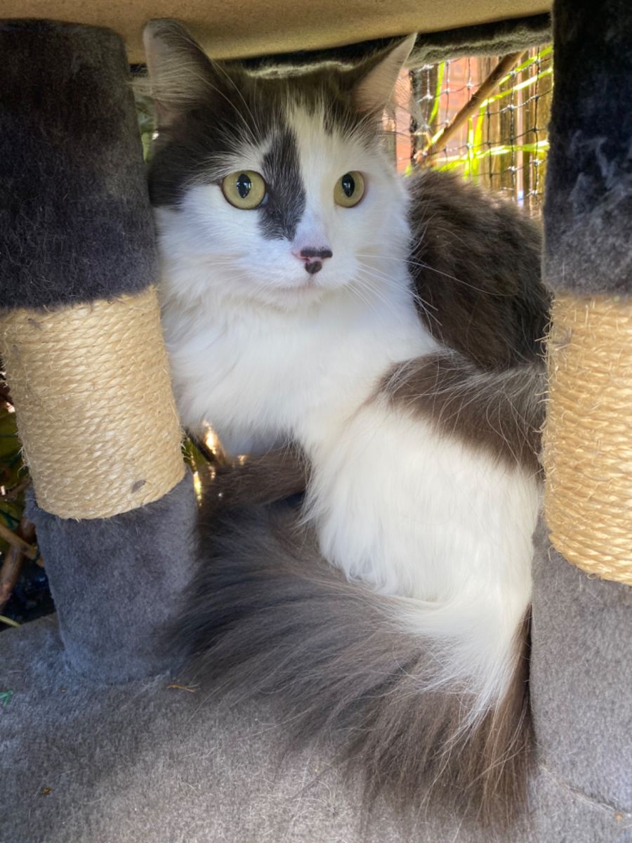 Missy is 5 years old and came into care after her mum passed away. Missy is shy at first, but warms once she is comfortable and feels safe. Missy has always been an indoor outdoor cat, sleeping inside of a night, but exploring safely during the day. She is independent and confident, easy going and easy to please. She does not like to be held or picked up, and will give you a nibble if she’s being touched too roughly. Missy is fine with other dogs and cats, however would need time to adjust alongside new siblings