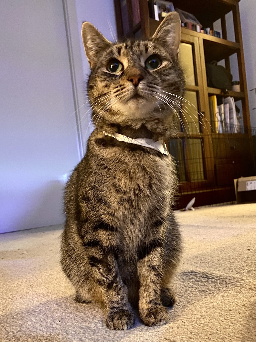 Tabitha doesn't mind some gentle pats but is not a fan of being picked up. She may even engage in some play with you, if you have the right toys.