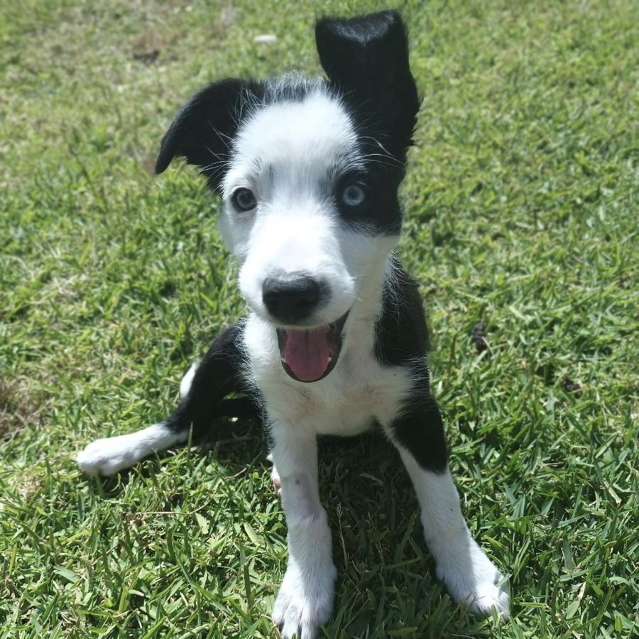 Super active, sweet natured and well socialised with people and other dogs. She is already quite responsive with training (sit and recall) and affectionate (when she’s looking for a cuddle and nap).