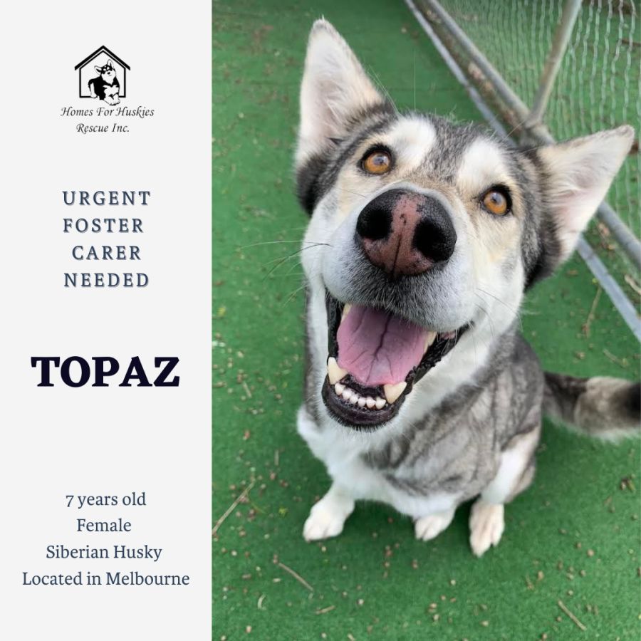 Topaz is a 7 year old female husky who has landed in the pound after escaping her backyard a few times. She needs a home where people understand this and can provide her with a safe, secure home as well as ongoing training.