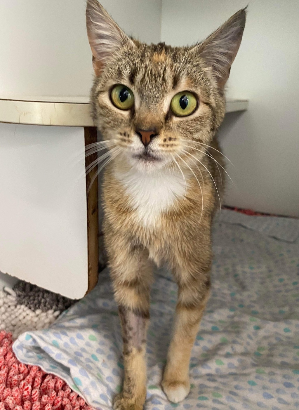 This petite cat is sure to win your heart over with her adorable face. She sticks her tongue out at everyone she meets, but for her it's a gesture of love and excitement to meet you. This beautiful tabby girl, with her stunning eyes will capture your heart almost immediately.