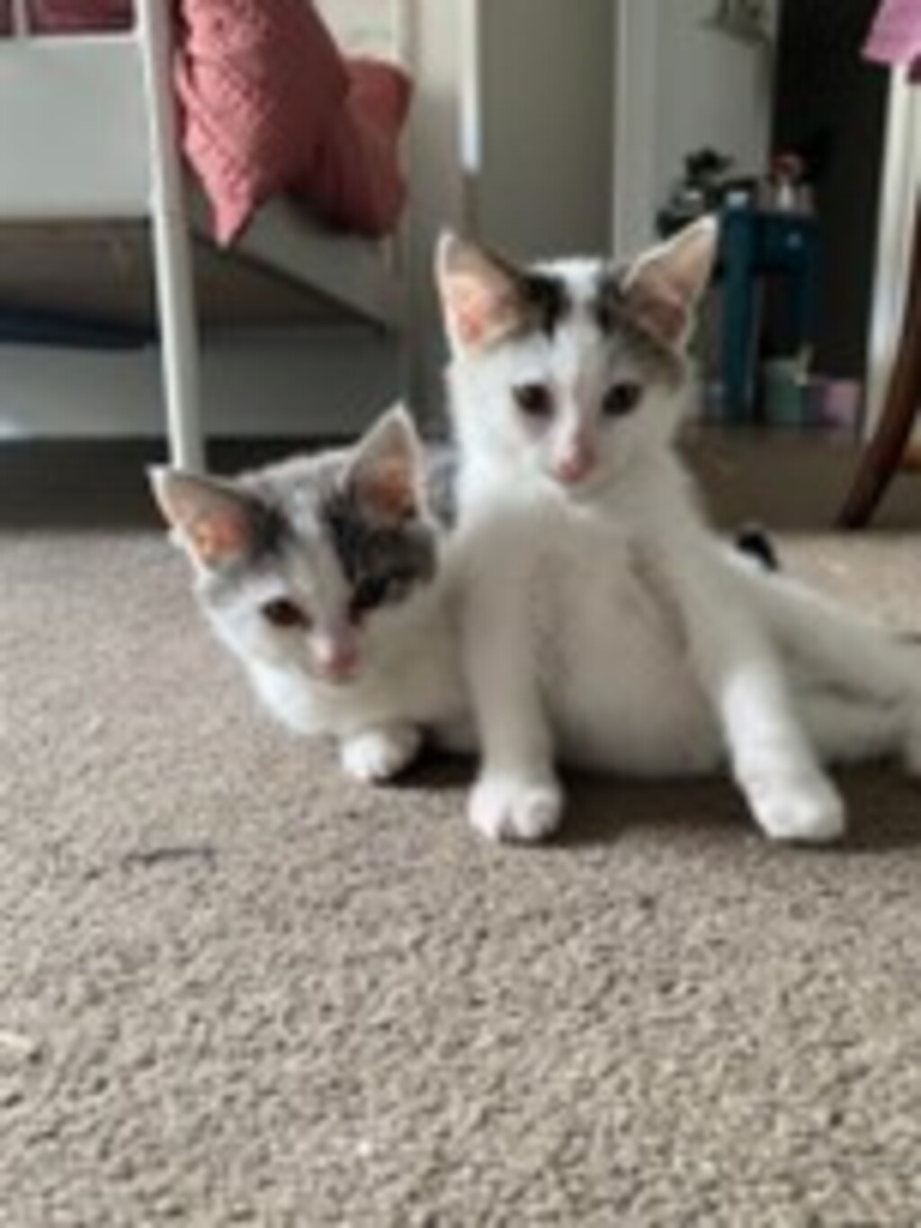 As a pair, these two are affectionate, playful and curious about the world around them. Their little meow's will make you fall in love! Half the time you can't hear them but see their mouths move. They can take a little bit to warm up, but once they have, you'll never meet a more entertaining and funny pair.