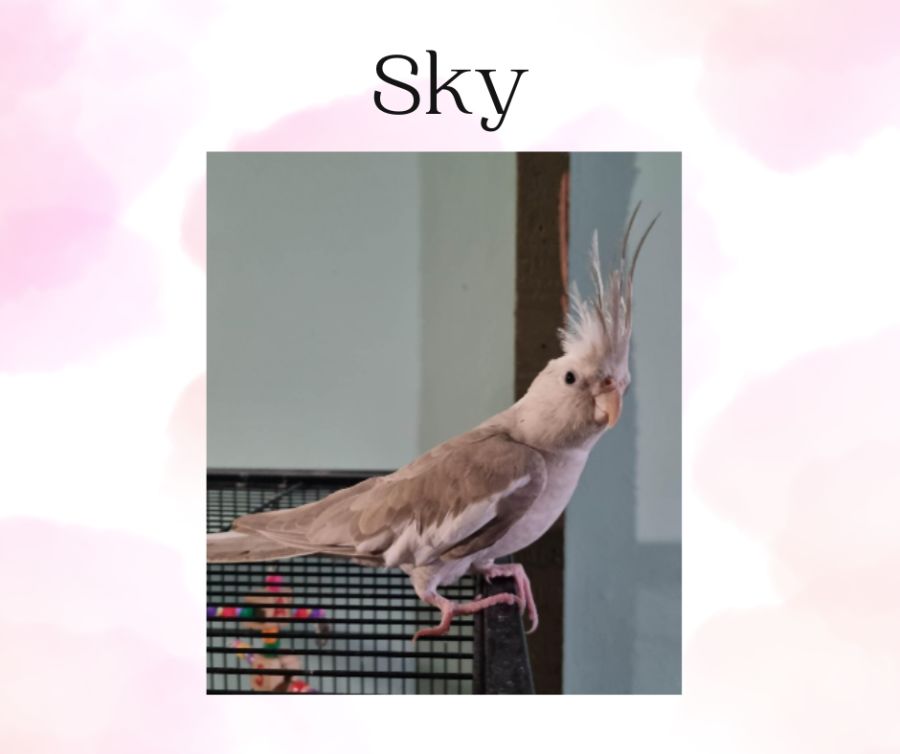 Sky is a young, semitame cockatiel. Sky is gentle and sweet but is a little weary of hands and will require trust building with her new owner. Sky needs a diet of vetafarm nutriblend/parrot essentials pellets, a small amount of budgie seed, fresh fruit and vegetables and fresh drinking water. Sky requires a nice spacious cage, fresh natural branches and foliage, lots of fun toys and out of cage time daily to stretch her wings and be social with her humans.