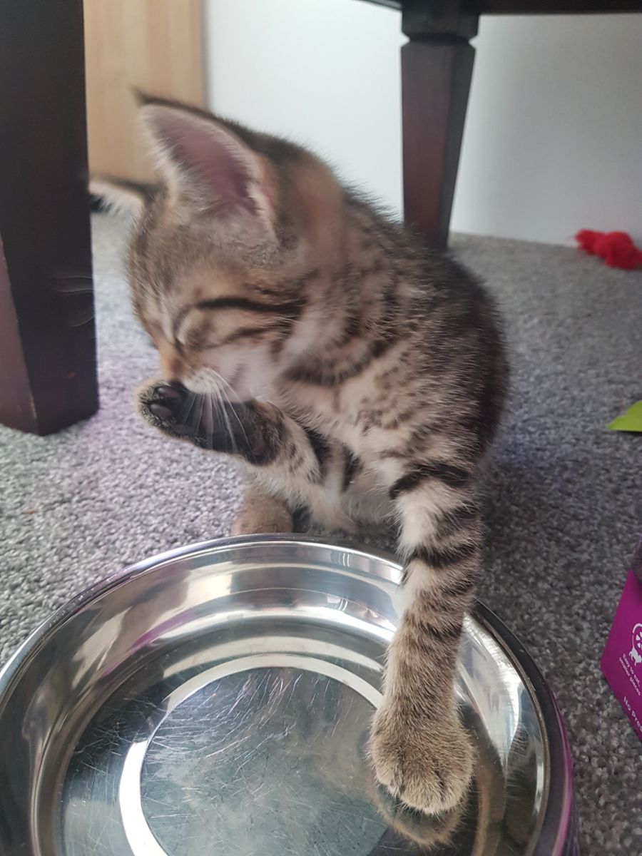 Fili was born in foster care, her mother is also a very social, confident and loving mother. She has been in loving environment between her cat mum and foster mum. She has had experience with children, other cats, and even a parrot. She eats well, is litter tray trained, and ready for her furever home!