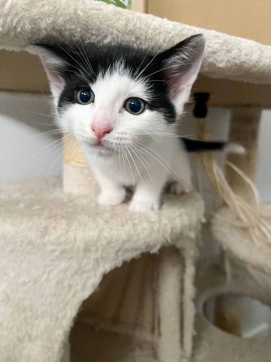 Simba is an adventurous boy who loves playing with toys, climbing and exploring. He likes to be picked up for cuddles, nose kisses and belly rubs and curl up beside you on the couch in the evenings. This boy is playful! he loves interaction and is great with kids, is very curious and social. He loves other cats and has grown up with a gentle dog who he often sleeps with. A sunny window will behis favourite place to hang all day and watch the world go by. Simba would love to be adopted with one of his brothers so they can wrestle for life (Otis, Raffy or Buddy) but we understand this is not always possible. He would bond easily with an existing pet in your home