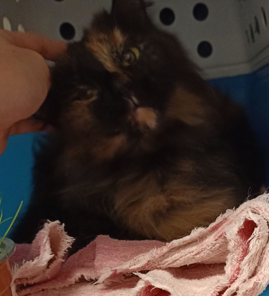 Chi Chi, as she is affectionately known, is a friendly tortie who is initially very shy. However when she warms up she responds to affection and once settled in a home she will be happy to relax and form a bond with you especially when you brush her beautiful medium hair every day.