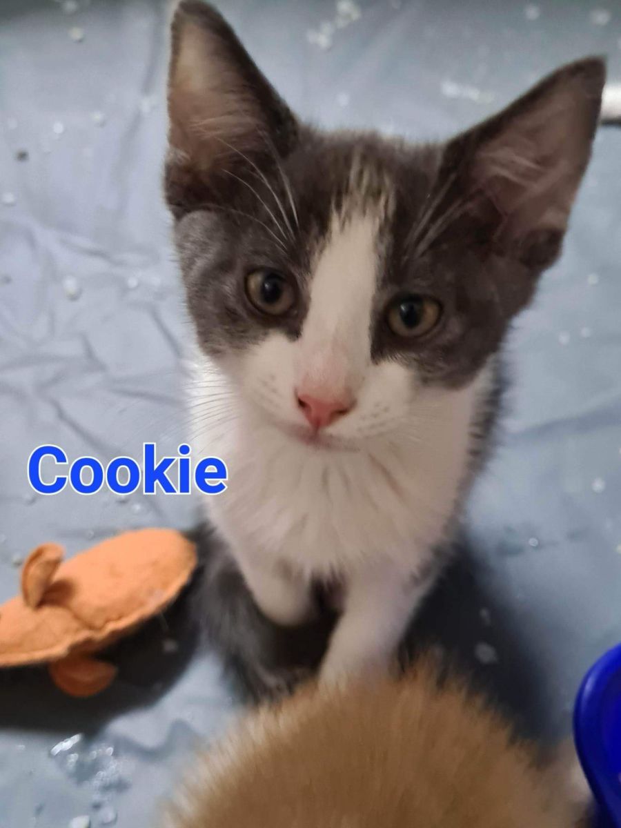 Cookie is an adorable ball of fluff. He's growing more confident each day and is playful and affectionate. A little quiet until he feels comfortable.