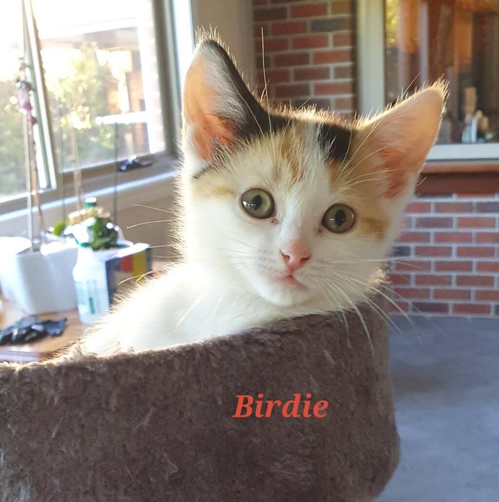 Baby Birdie was rescued by SCAR when she and her siblings (Stanley, Myrtle and Augustus) all found themselves in the pound due to no fault of their own.