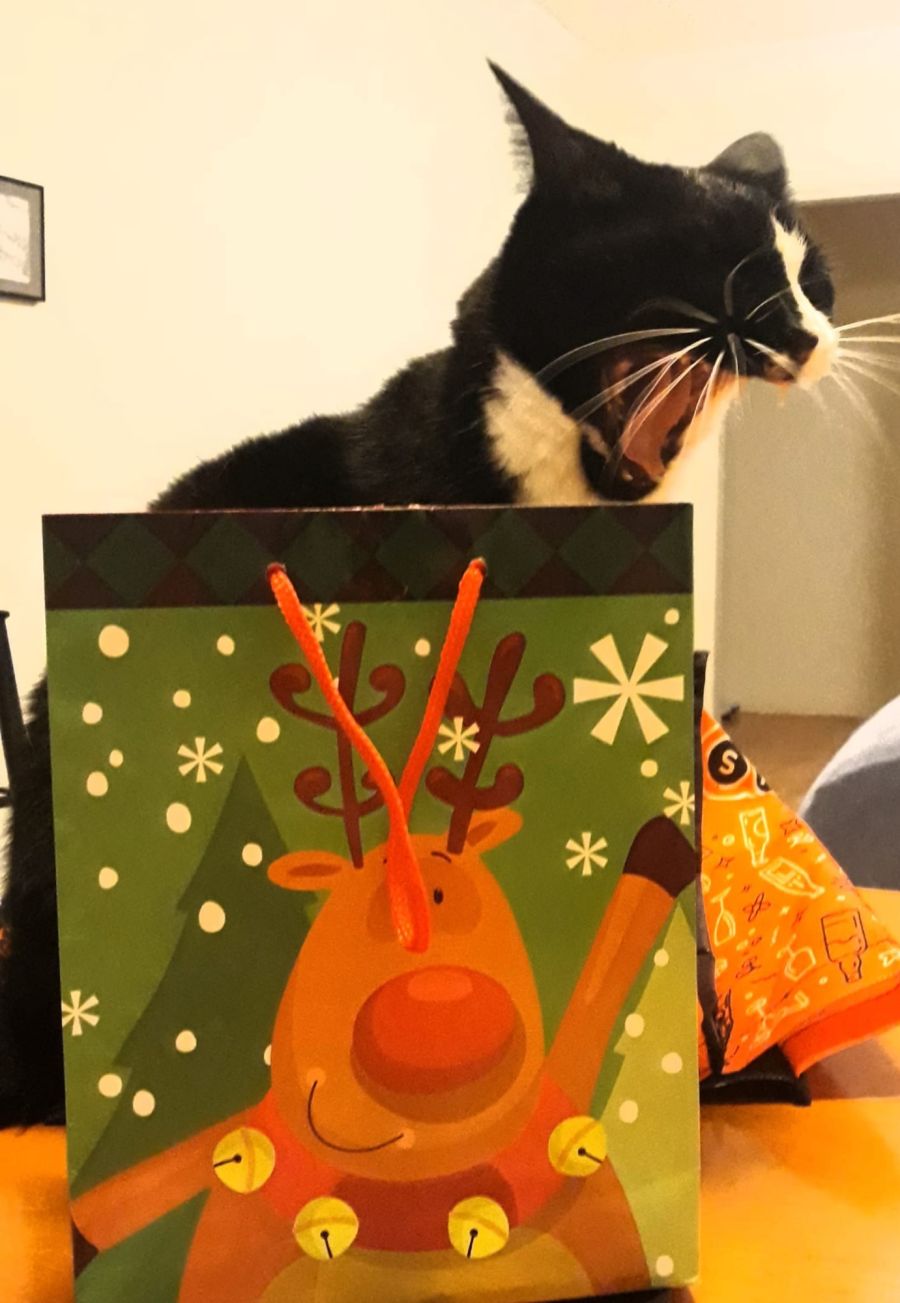 After you pat him, he finds a good spot to have a nap. If somebody is working, he would patiently wait for you to come home. He doesn't bite or scratch. He is potty trained. He is getting used to scratchy post but not much interested in toys.