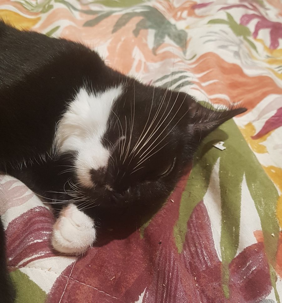Moki loves people. She will lie around to keep her people company, look for smooches and get as much attention as she can. She is learning to be tolerant of the other foster cats.
