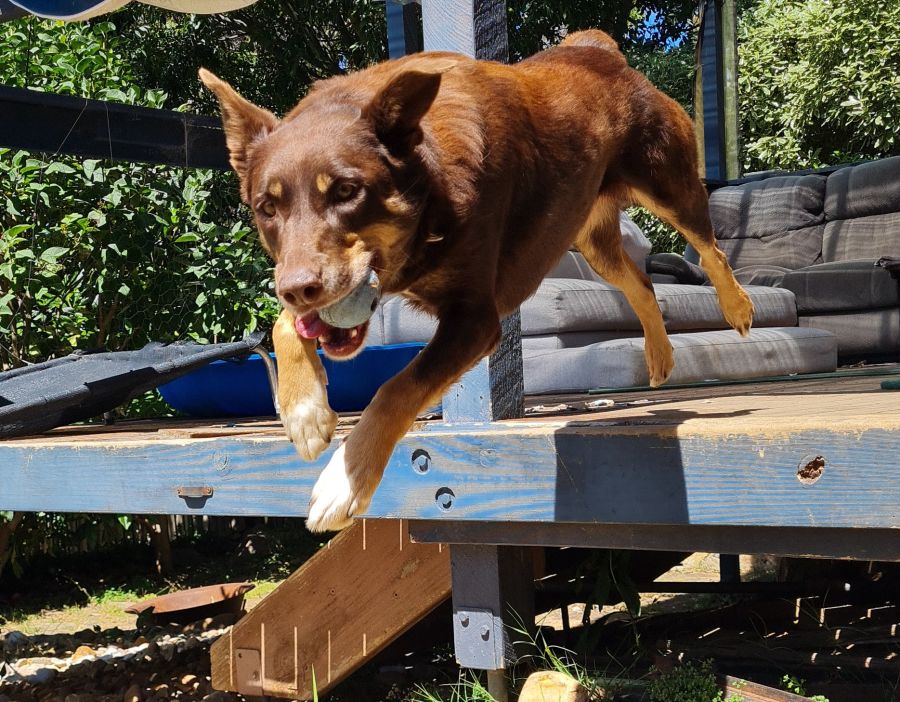 This sweet girl is well past the puppy stage and has been beautifully mannered while in foster care, with a fantastic off-switch. She has such a happy disposition and finds joy in everything. She loves to potter around the garden, run zoomies with the ball in her mouth, and go for walks and adventures.