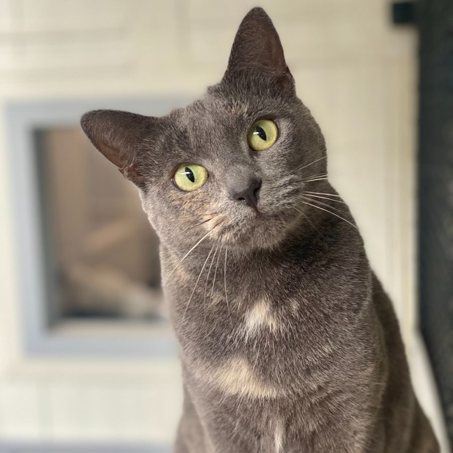 This girl loves to sit on her scratching post by her nice, big window to watch over everyone and make sure everything’s going smoothly in the shelter. When someone is close enough, she likes to have a chat and let them know all about her busy day.
