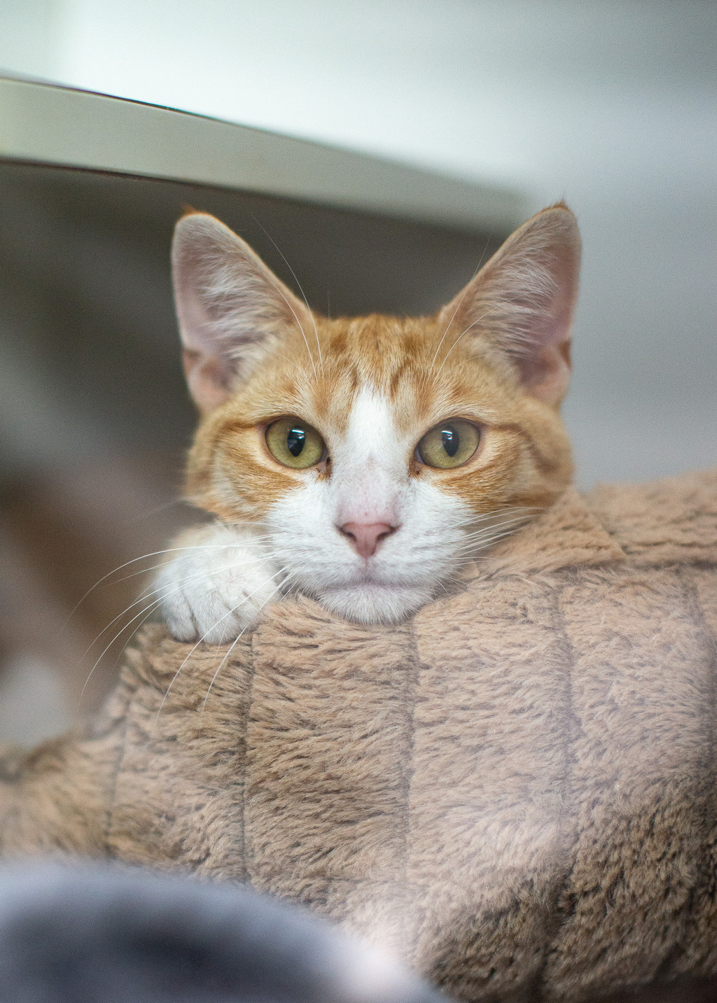 'I was a lovely little ginger kitten running around a big room with my friends and siblings. I was adopted quick because I was so cute and cuddly. But unfortunately that home didn't work out because I was too much kitten fun for them.
