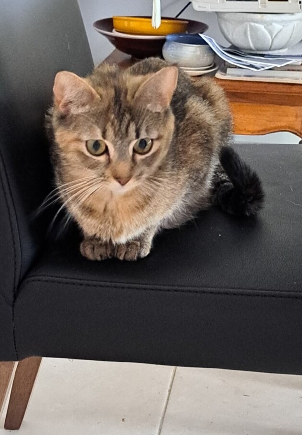 Her pretty, baby face, her big green eyes and her beautiful gingerbread tabby coat are sure to appeal. She will give you a gentle tap with soft paws to get your attention - then signal for her favourite chin rub. If you are having a rest, she will join you for a nap.