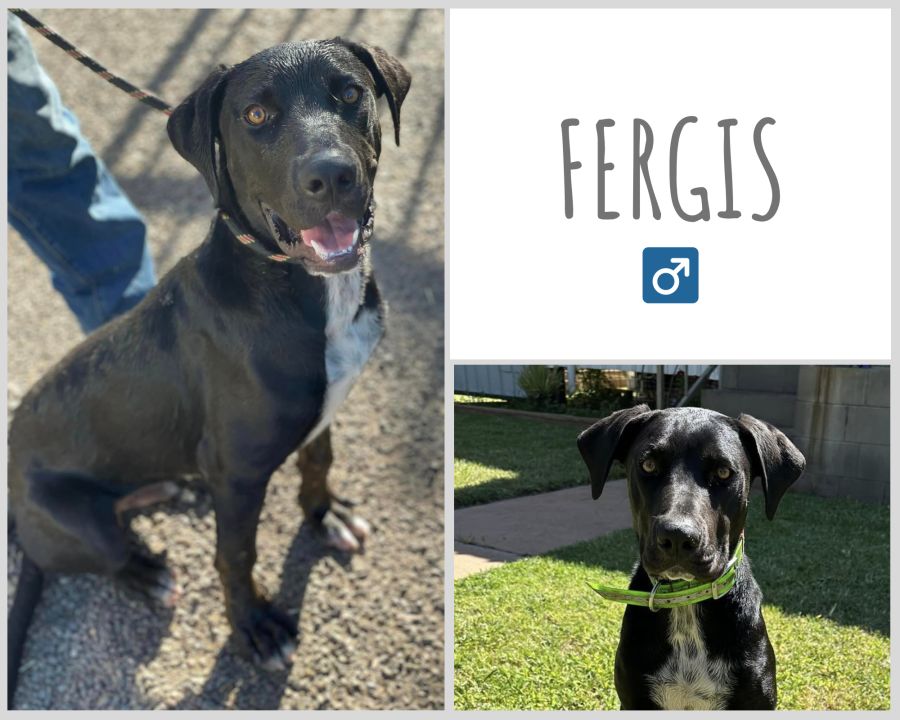 Fergis has only young and he’s already over medium size so still has a bit of growing to do! He has a great personality and is super sweet. He doesn’t know his size and still is a puppy at heart - but he can sit when asked and he loves the water.