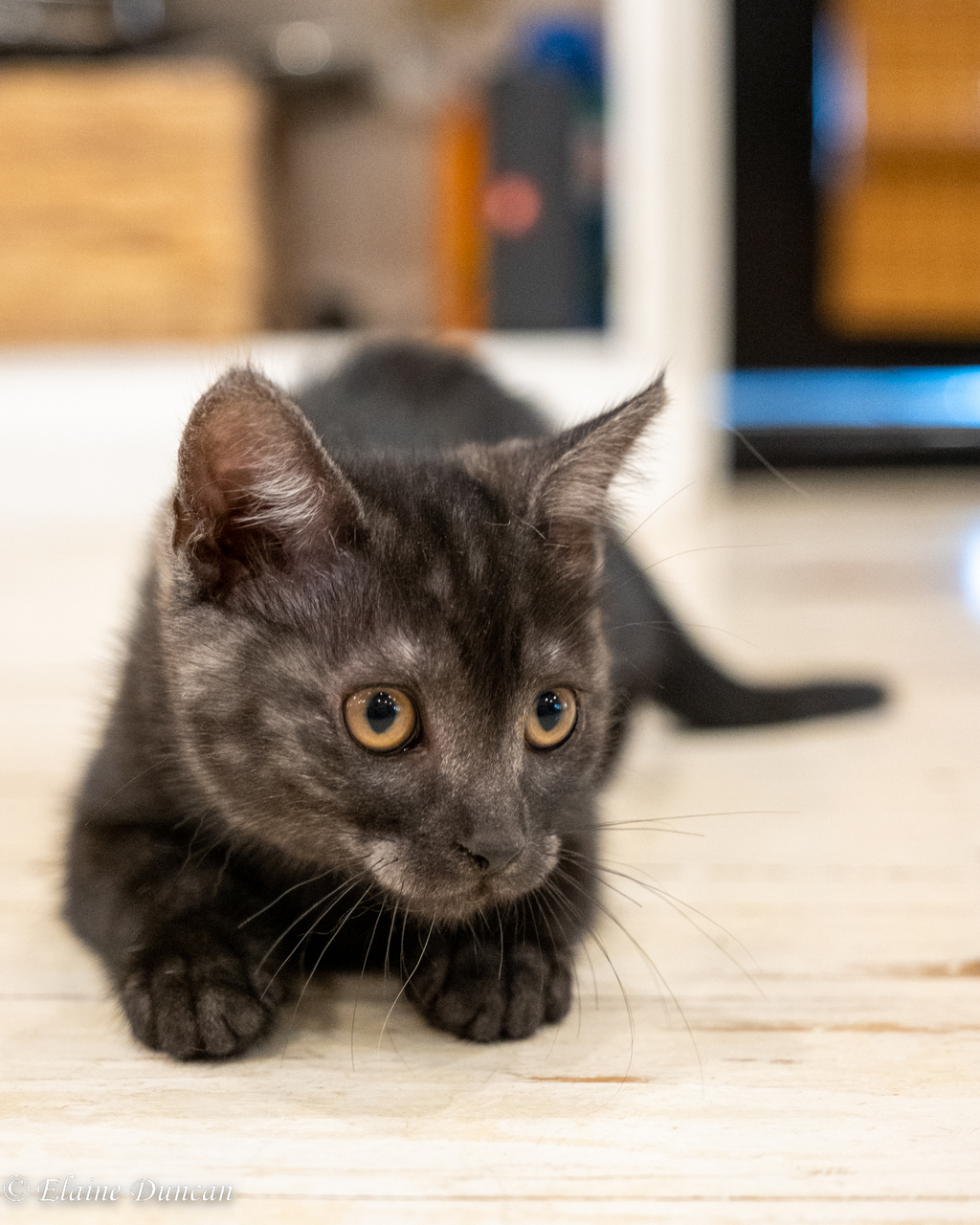 While Poppy's favourite thing is playing, snuggling is a very close second. She adores her foster people, and will regularly seek out their attention by squeaking and meowing at them. She adores pats and cuddles, both of which will trigger purring immediately. Poppy will snuggle in like she is trying to get as close to you as possible - her favourite sleeping spots are under your chin and on your chest.