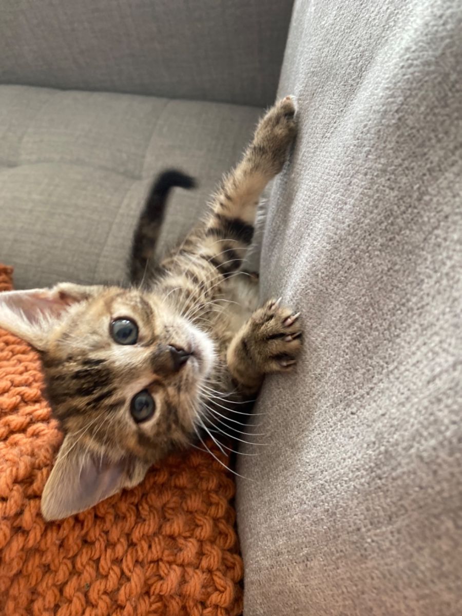 Mistle is an 8 week old Female Tabby Domestic Short Hair kitten.