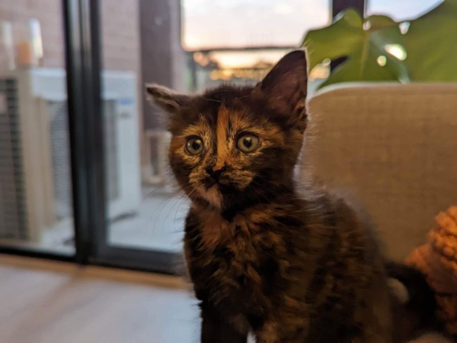 Toe is an 8 week old Female Tortoiseshell Domestic Short Hair kitten.