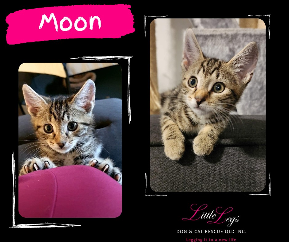 Moon can be a little shy at first but once he feels safe he becomes a confident little man he loves to play as well as go off on his own & explore he spends his day playing with his brother doing zoomies around the house and will occasionally cuddle up next to you on the couch when he's had enough