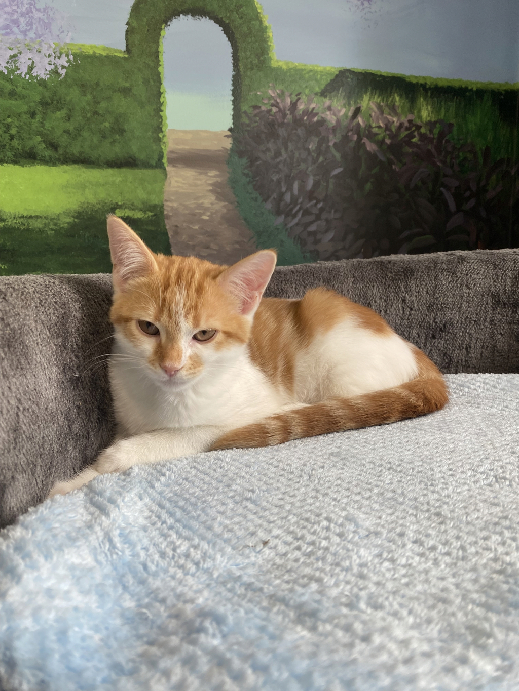 Clock is a playful and sweet girl who would make a great friend for another social kitty in the home. So if you so have another cat or kitten in the home looking for a feline friend, then Clock is your girl.