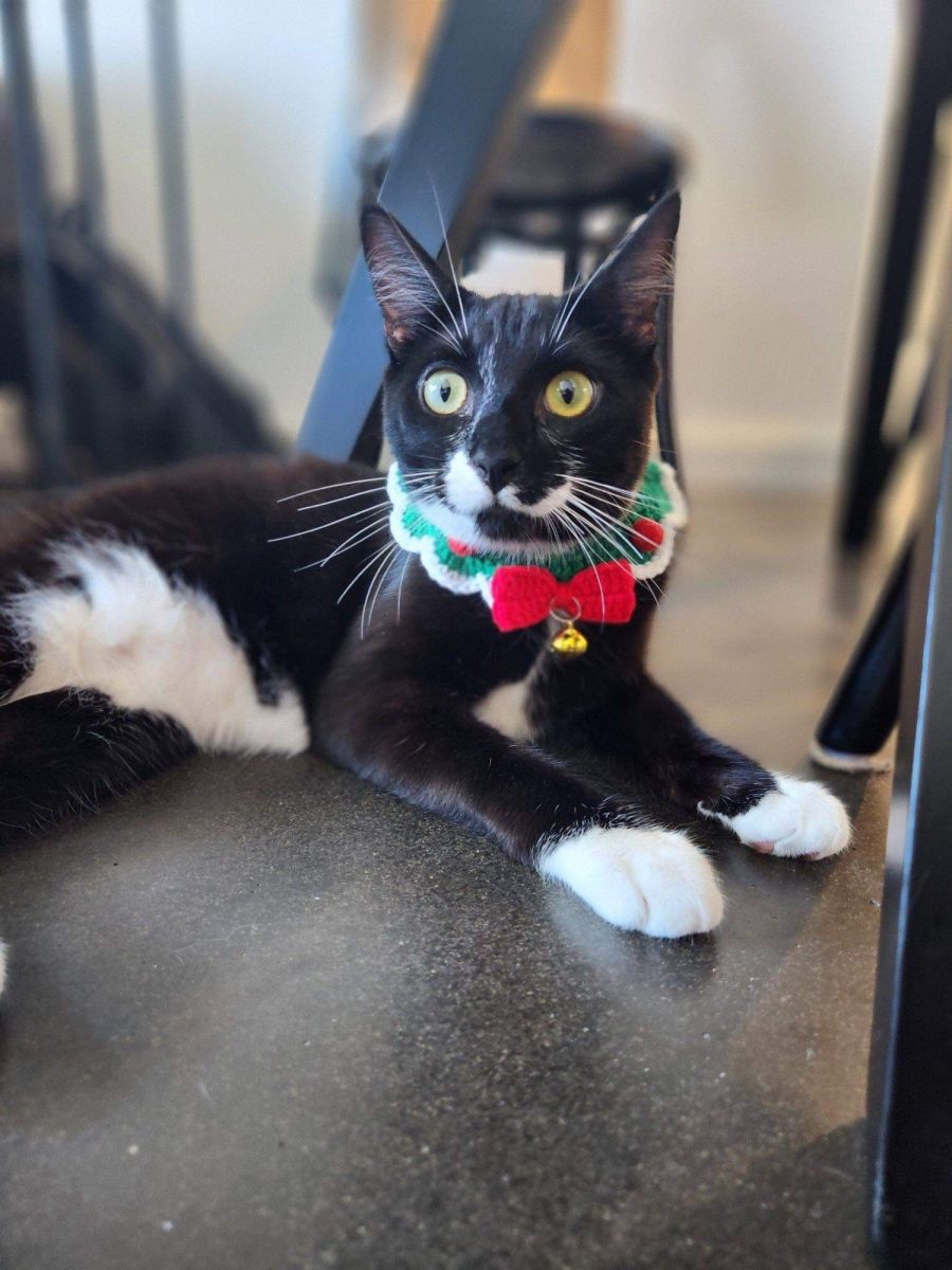 Always ready to greet you at the door with nuzzles and head boops, he’ll follow you around like a shadow. Some of his interests include birdwatching, playing catch, corridor soccer, wrapping paper, and anything on a string.