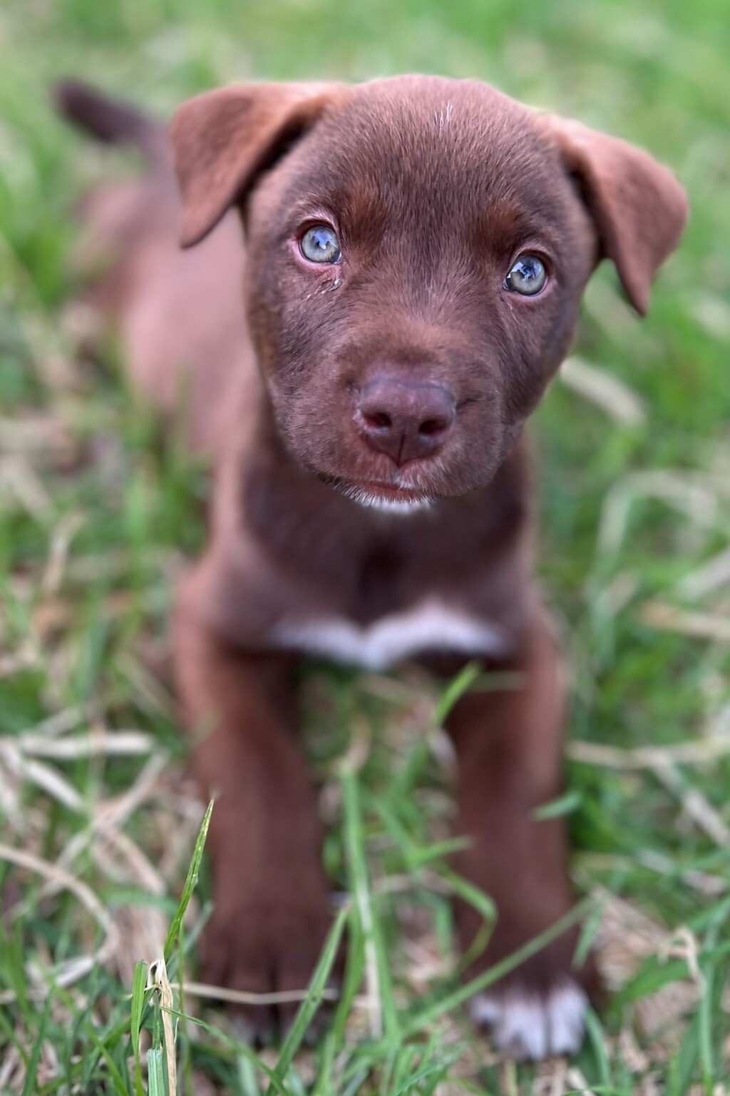 TOBIAS #2894 is one of four gorgeous pups who is eight weeks old (D.O.B. 5/11/22) and ready to go to his new home very soon. He is a chocolate boy with white on his chest and has a distinct kink in his tail. Their mother is a blue Australian Cattle Dog and their dad is a rough coated medium sized mixed breed. Photos of both parents attached. The adoption fee for these lovely pups includes desexing, chip, vaccination, worm/flea treatment and vet check.