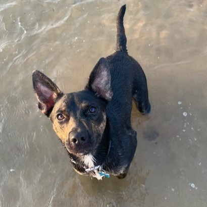 I'm a friendly and inquisitive boy. I enjoy playing with the ball, swimming at the beach and playing with other dogs at the park! I have a lot of energy, so I would love to live with someone with time to exercise with me, and provide enrichment for my mind. Maybe even kids I can play with, or another doggy friend I can have zoomies with. (My previous owner says I love kids and have lots of doggy friends at the park.)