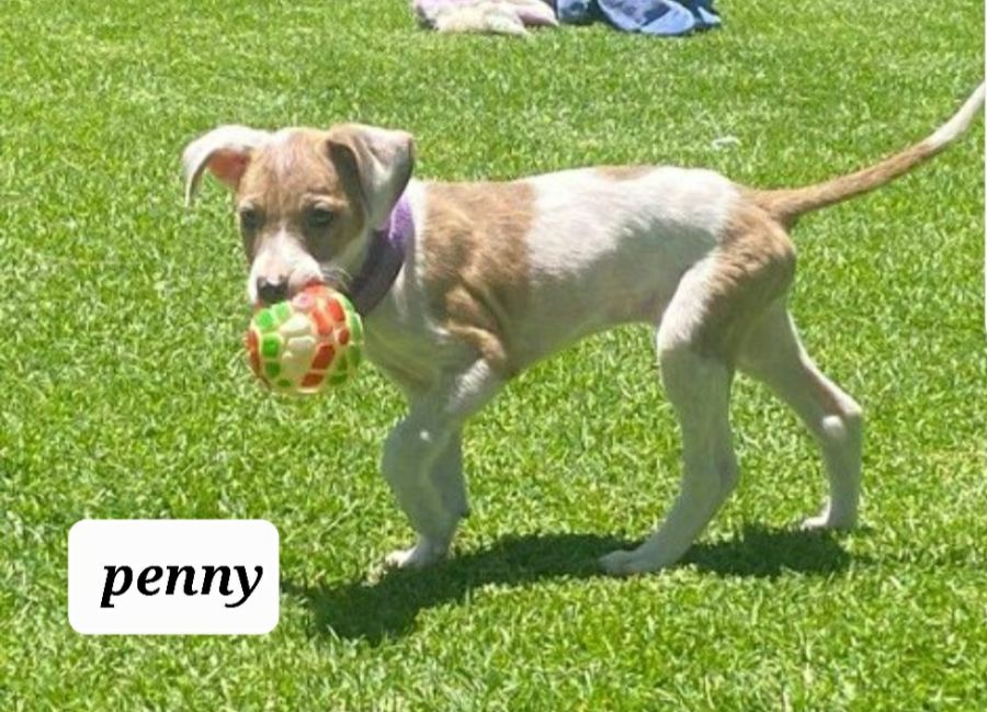 We have four beautiful puppies now available: As the smallest of the litter, Penny may be tiny but she is fierce! She will play hard with her siblings and loves to vocalise to get your attention. Penny is a snuggle extraordinaire, and loves her humans, following you around and melting into your arms. She is white with fawn coloured patches.