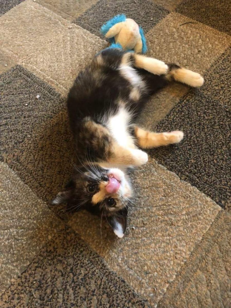Denali is a female and the only coloured coat of the bunch! She has a beautiful calico pattern to her fur. Denali is the little princess of the litter. She nearly matches Everest’s playfulness and energy, then after she’s won out from her play session, she’s happy to be scooped up and held upside down like a baby for pats.