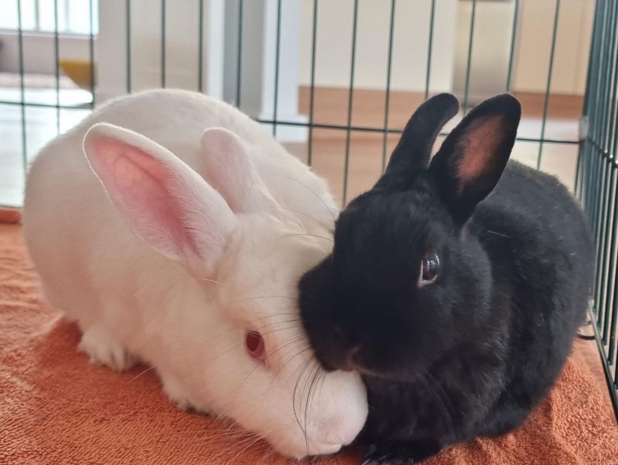 These two well-behaved bunnies are bonded to each other, meaning they're perfectly happy spending time with just each other when you're not around. But don’t worry they do love hoomin pats and affection!