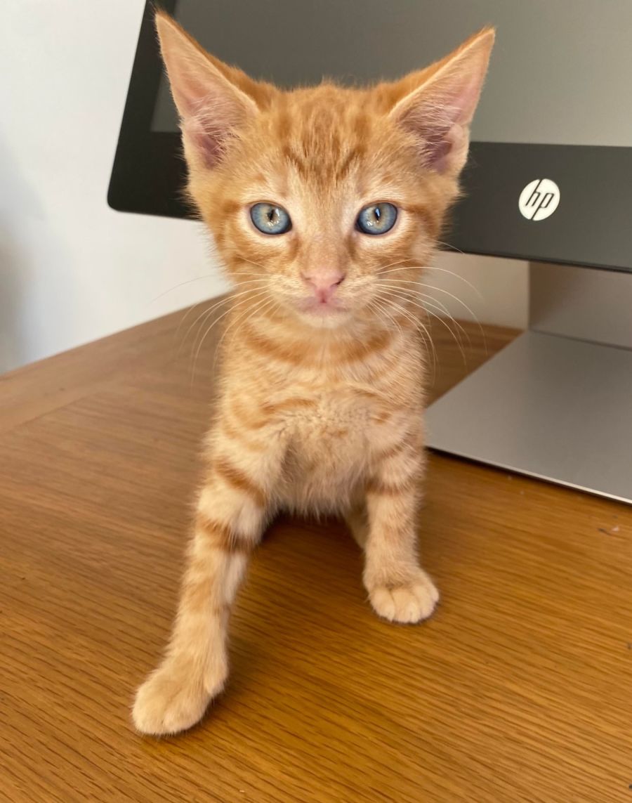 Cutie pie Bruce came into care with his litter mates, and was taken on by a nursing Mumma cat in care. Bruce is a smoochy boy who is enjoying toys, and learning to play with them!
