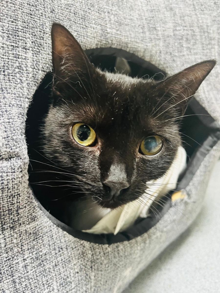 Daisy is a very loveable cat. Sheâs 1 year old and still a kitten at heart. She loves playing with her toys and likes to run around doing zoomies, but at night she loves to sleep and cuddle up with her people đ€