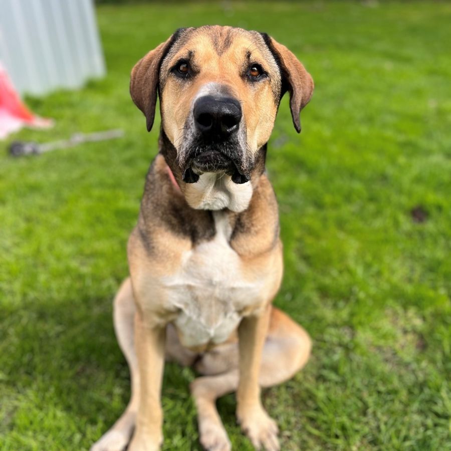 Lucky is a very big girl weighing 47kg, but every inch of her is filled with love! She is a very sweet and happy-go-lucky lady who loves people and adores lots of company and pats. She would make a great addition to many different family dynamics. Despite her large size, Lucky likes to think of herself as a lap dog and will often plop herself onto your lap for a cuddle. Her absolute favourite thing though, is to roll over for lots of belly rubs!