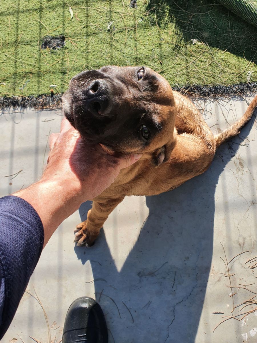 “Scrubby” is a typical big dog pup. He is all legs and feet ! But with his Mastif heritage, he’s going to grow into a great looking dog. As Scrubby is still a puppy, the type of dog he becomes is up to you and as with all dogs, he will need training and discipline to ensure he doesn’t learn any bad habits. Scrubbys previous owner is too busy for a puppy and is unable to dedicate the time that a happy puppy requires. Scrubby is currently sharing an exercise yard with another puppy (female) and they are getting on just fine but we’re not sure how Scrubby feels about cats and other animals. Definitely going to be someone's best friend :)