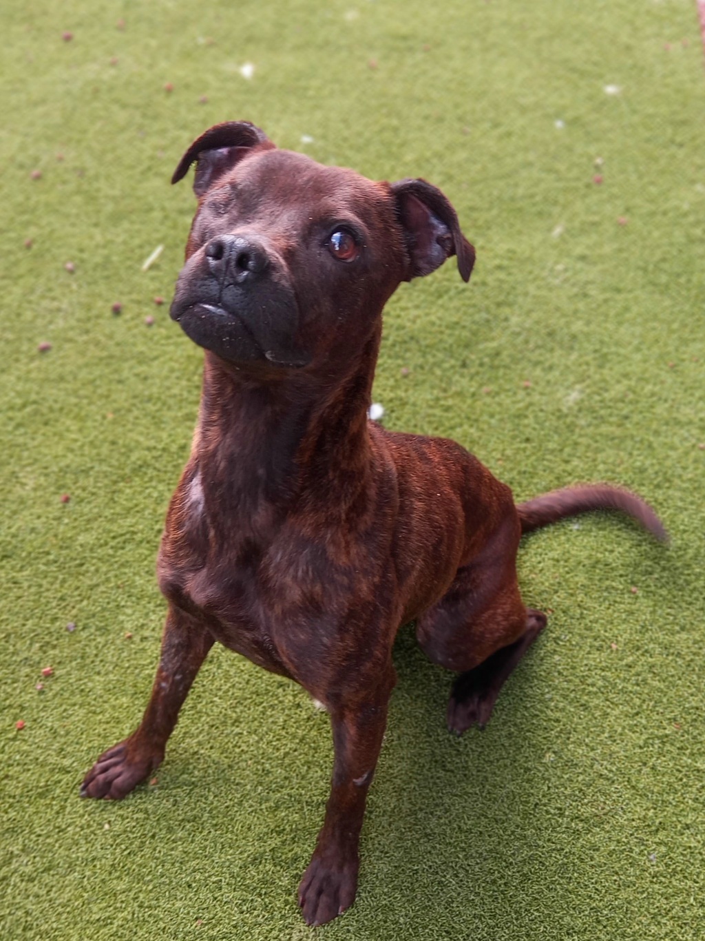 As you can see, Missy is missing her right eye. Due to a hairy situation with another resident dog, this has left her fearful of other dogs. Therefore, Missy is best suited to a home as a solo dog with no other animals.