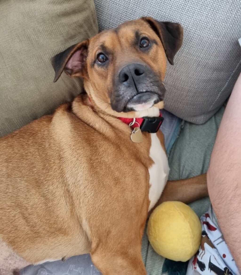 Bess has proved to be social with both cats and dogs so bring along your canine pal if you'd like to see how they get along. Bess is learning how to play with toys but is beginning to get excited by squeaky or fluffy things.
