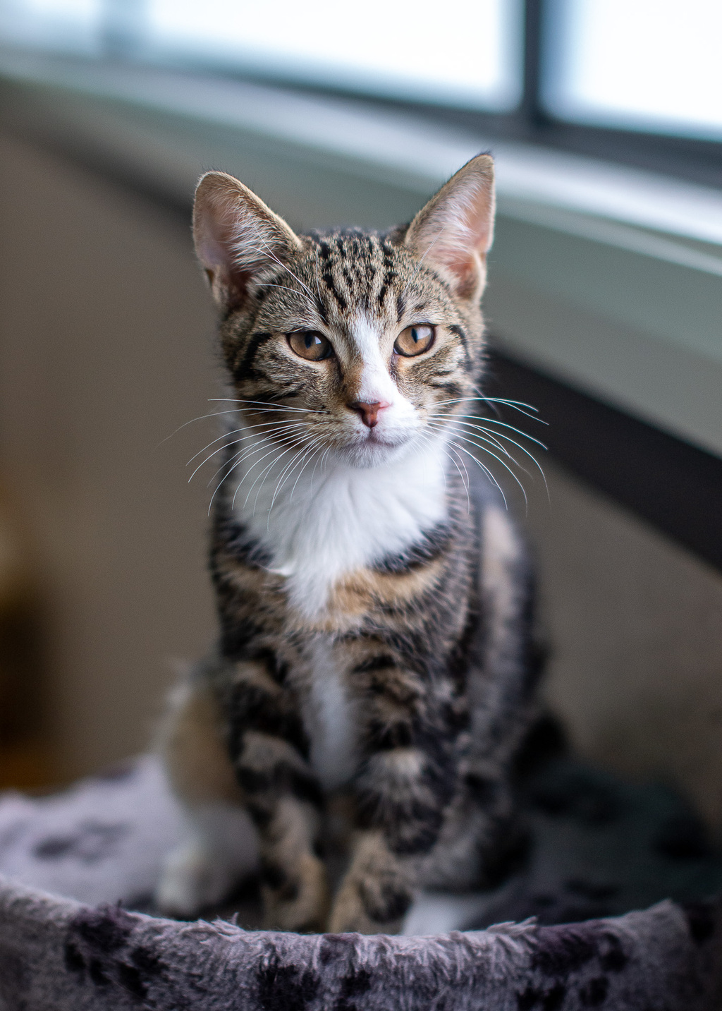 Donnie is one of our more laid back kittens, enjoying down time in his bed and spending time with his favourite humans.