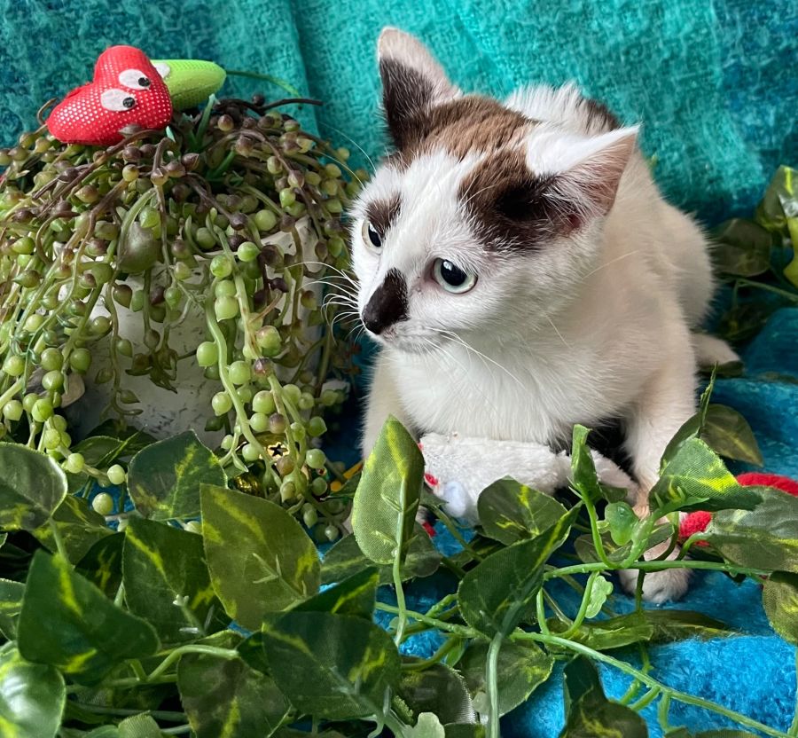 She didn’t have the best start to life, and has been fighting hard to get to where she is today. She loves to play and climb, but she also likes to do her own thing and just relax and nap in a nice sunny spot by the window.