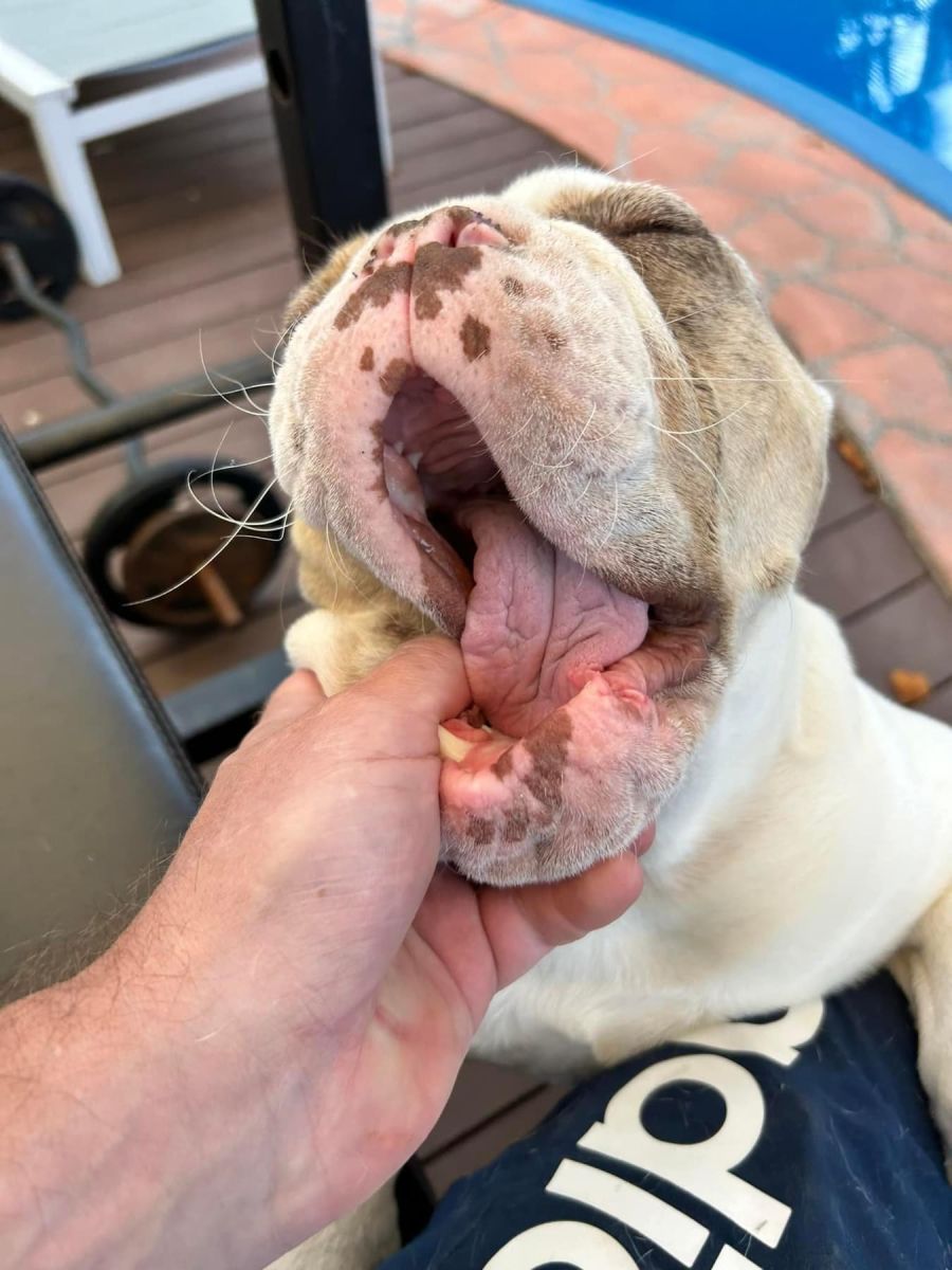 Max has had a surgery for his cleft pallet and nose, to help his breathing as he is a British bulldog, he’s also had a cherry eye removal