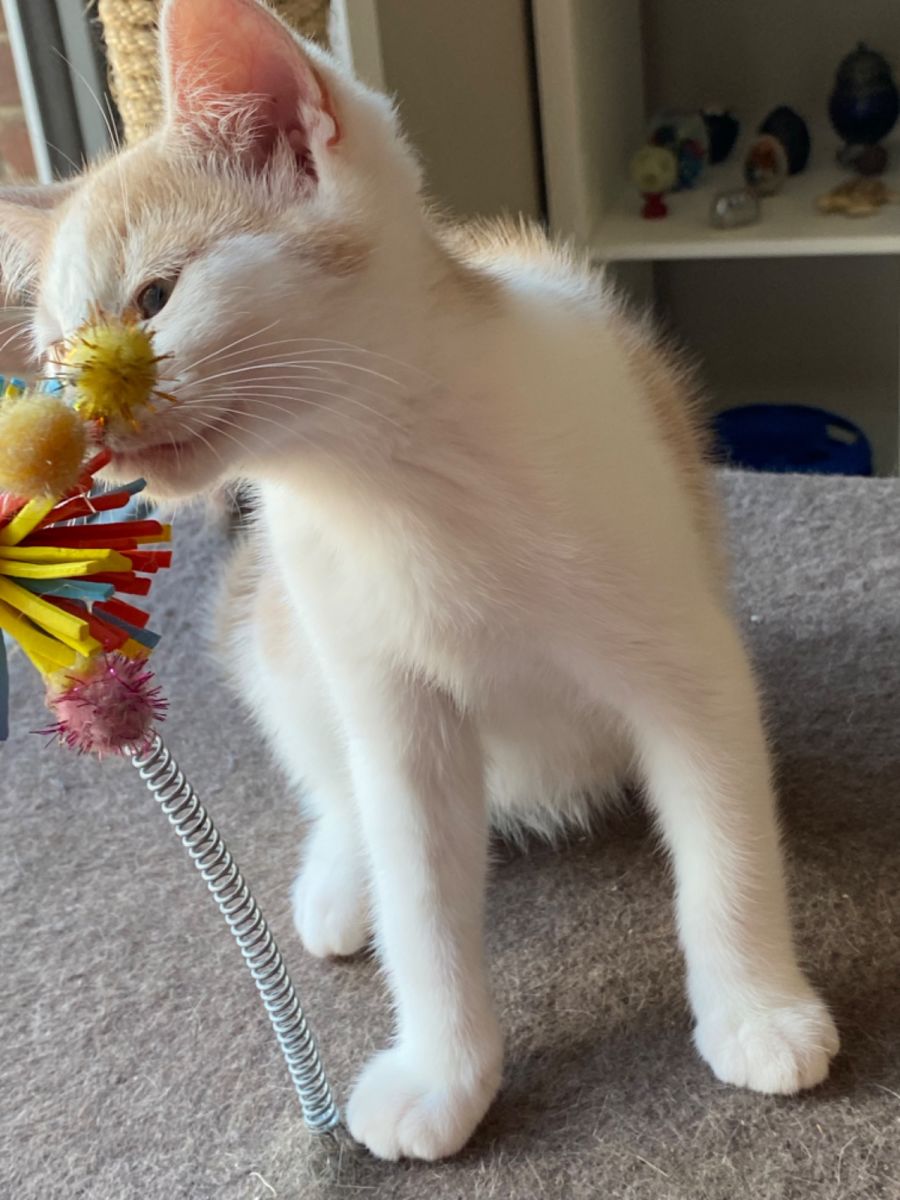 Pat loves his brothers and sisters and follows them around getting into mischief and chasing toys. He loves pats and cuddles and looking out the window watching the world go by.