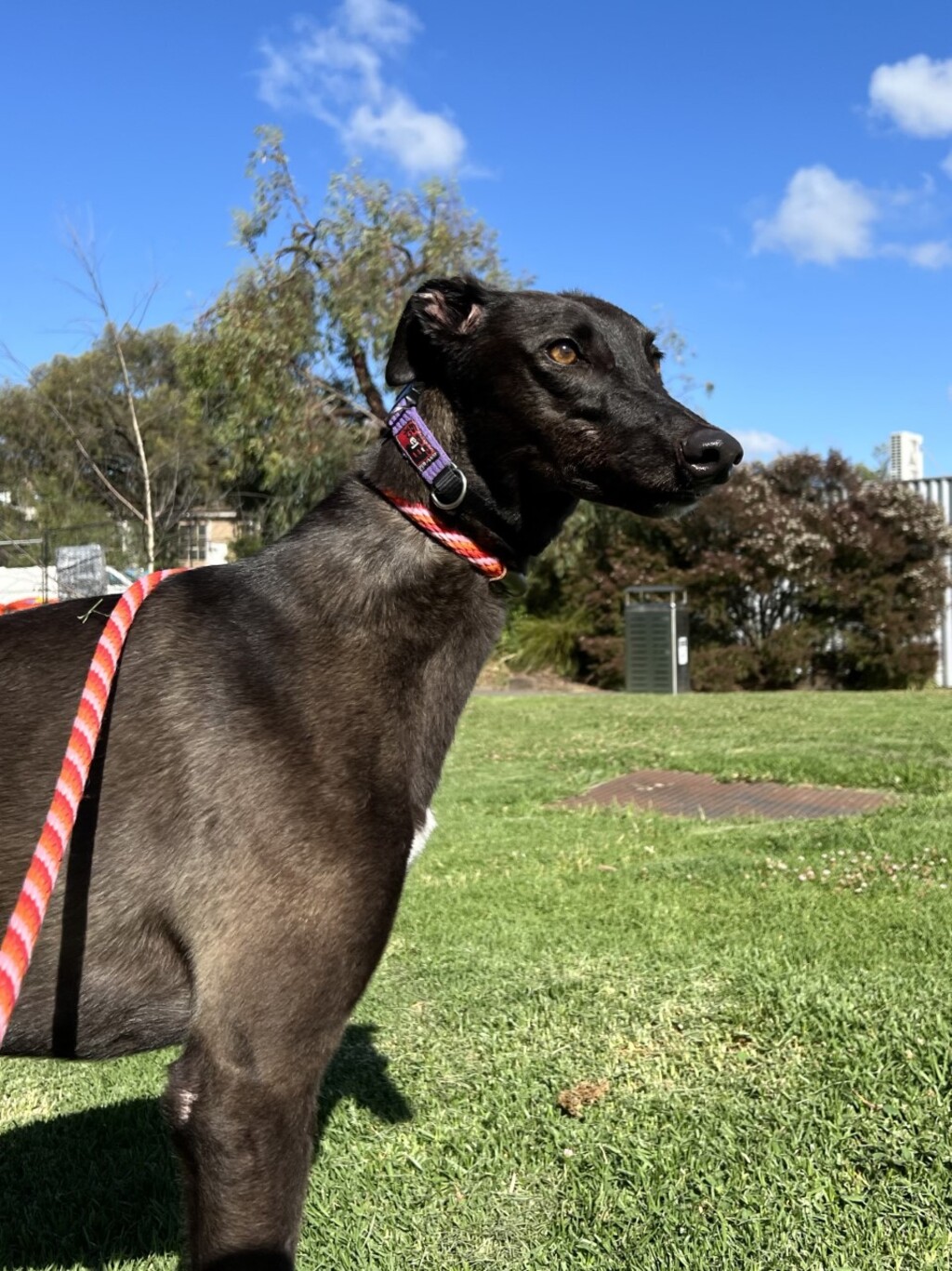 Meet Belle. Belle is a sweet and sensitive Greyhound who is looking for a new home where she can relax and spend plenty of time with her favourite people. She can be a very boisterous and playful and girl when she feels safe and comfortable, so she would love a big yard to do her zoomies in! Belle is a bit nervous around new dogs, but may be okay living with a friendly, calm dog of a similar breed.