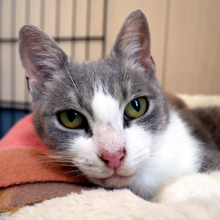 As with humans if we loose a particular sense another will increase to balance the loss. Once Catfish is settled and knows her environment she is an easy going lady who really just wants a warm bed to curl up in, preferably by a window where she can feel the warmth from the sun.