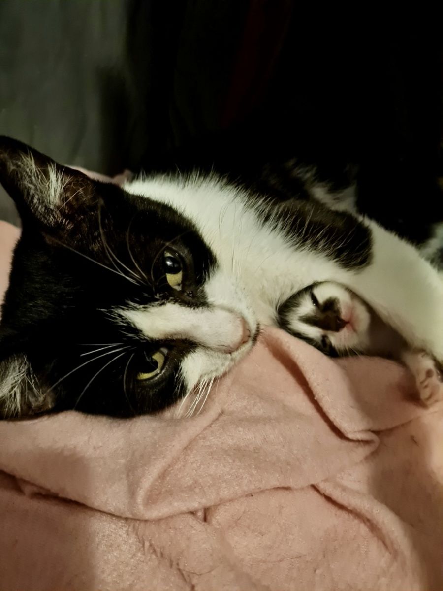 Sushi’s purrs take on a very high pitch when she really gets into a cuddle session.