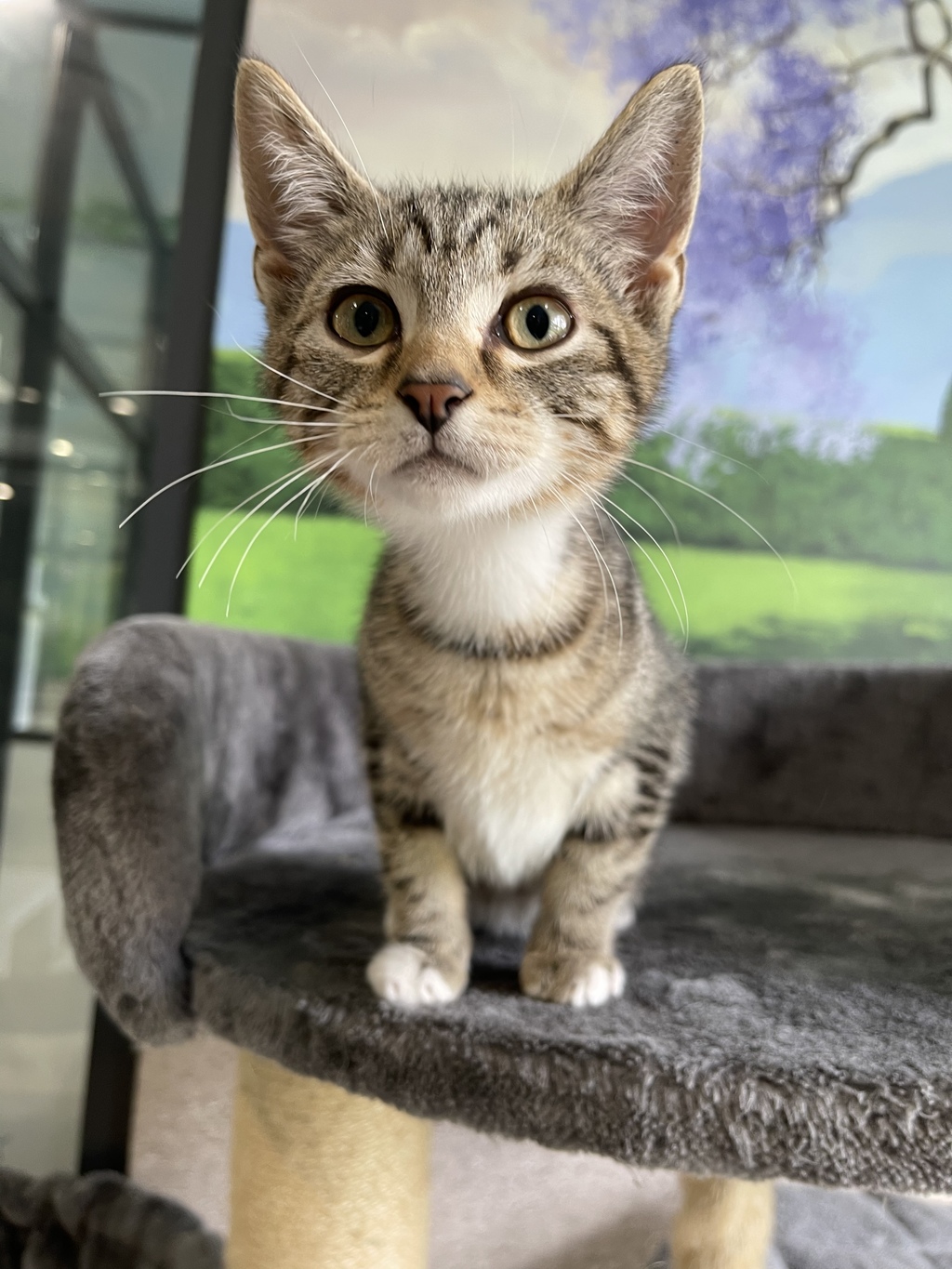 This kitten plays nicely with other felines and is quite confident when it comes to greeting new people.