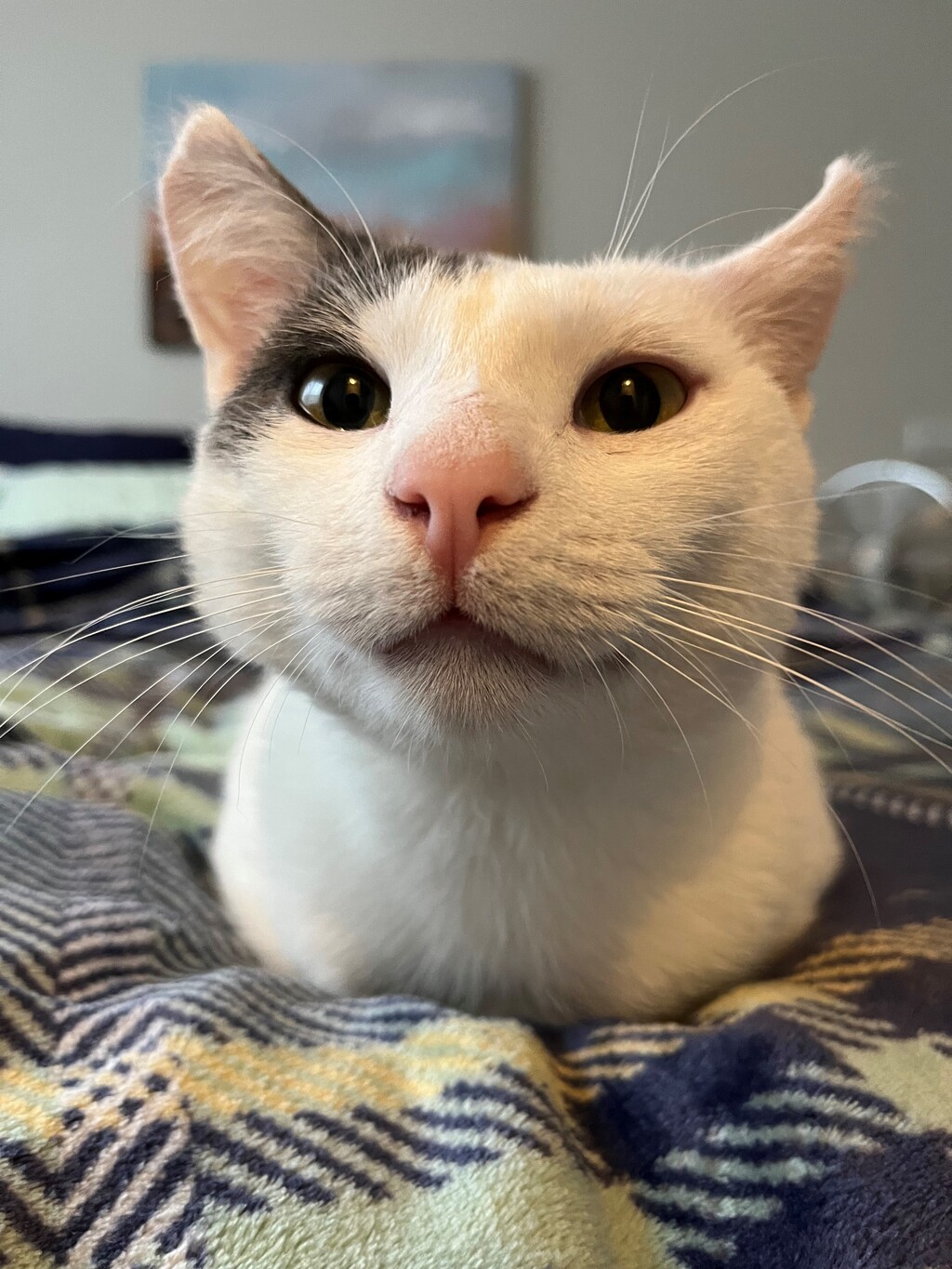 This is Coconut. Coconut is a very special boy. He is extremely smoochy and affectionate with his trusted humans.