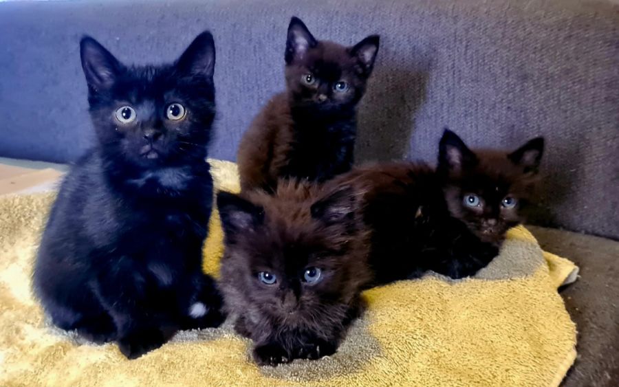 Gorgeous kitten Zoe came into care with her Mama cat, who has since found a new home. Zoe is now in a foster home spending time with two of our other kittens, Rue and Raven!