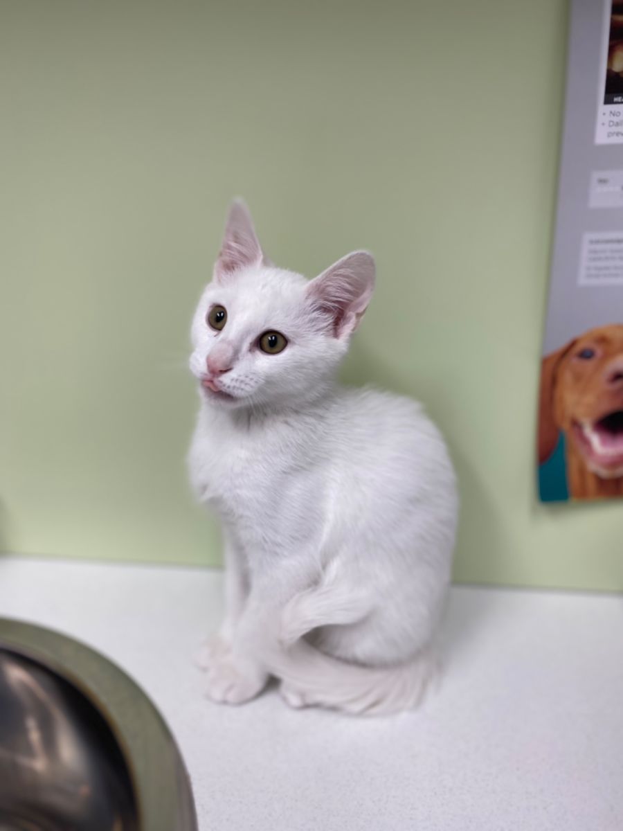 Olaf is a 13 week old Male White Domestic Short Hair Kitten.