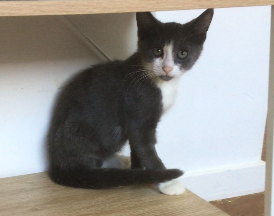Jojo is a playful and affectionate grey and white male kitten who came into care with his 5 siblings late last year. He is very sweet with a delightful personality and will make a wonderful addition to a loving home.